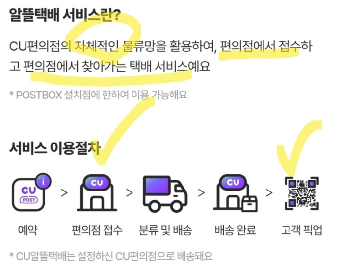 CU도 거의 동일한 방식이며, 일부 지점에서는 매장 직원이 직접 도와주는 경우도 있습니다.