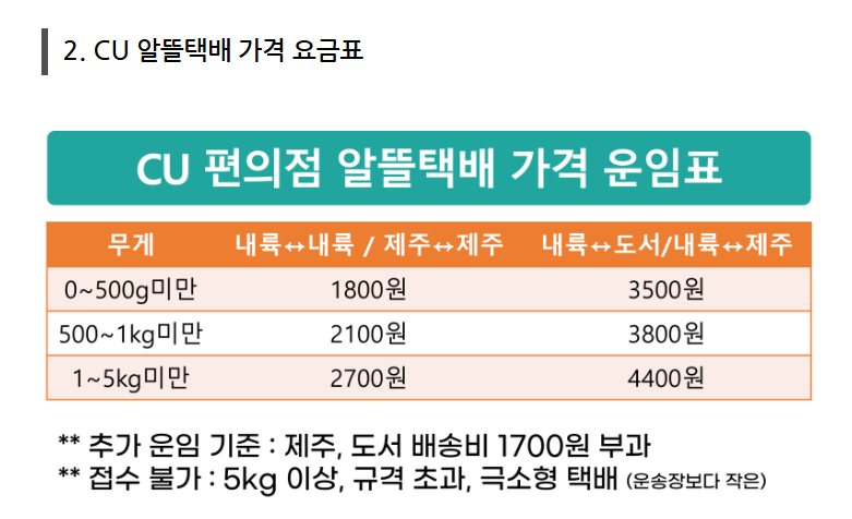 - 착불, 수취인 부담 결제 → 지원 안 됨 (선불만 가능)