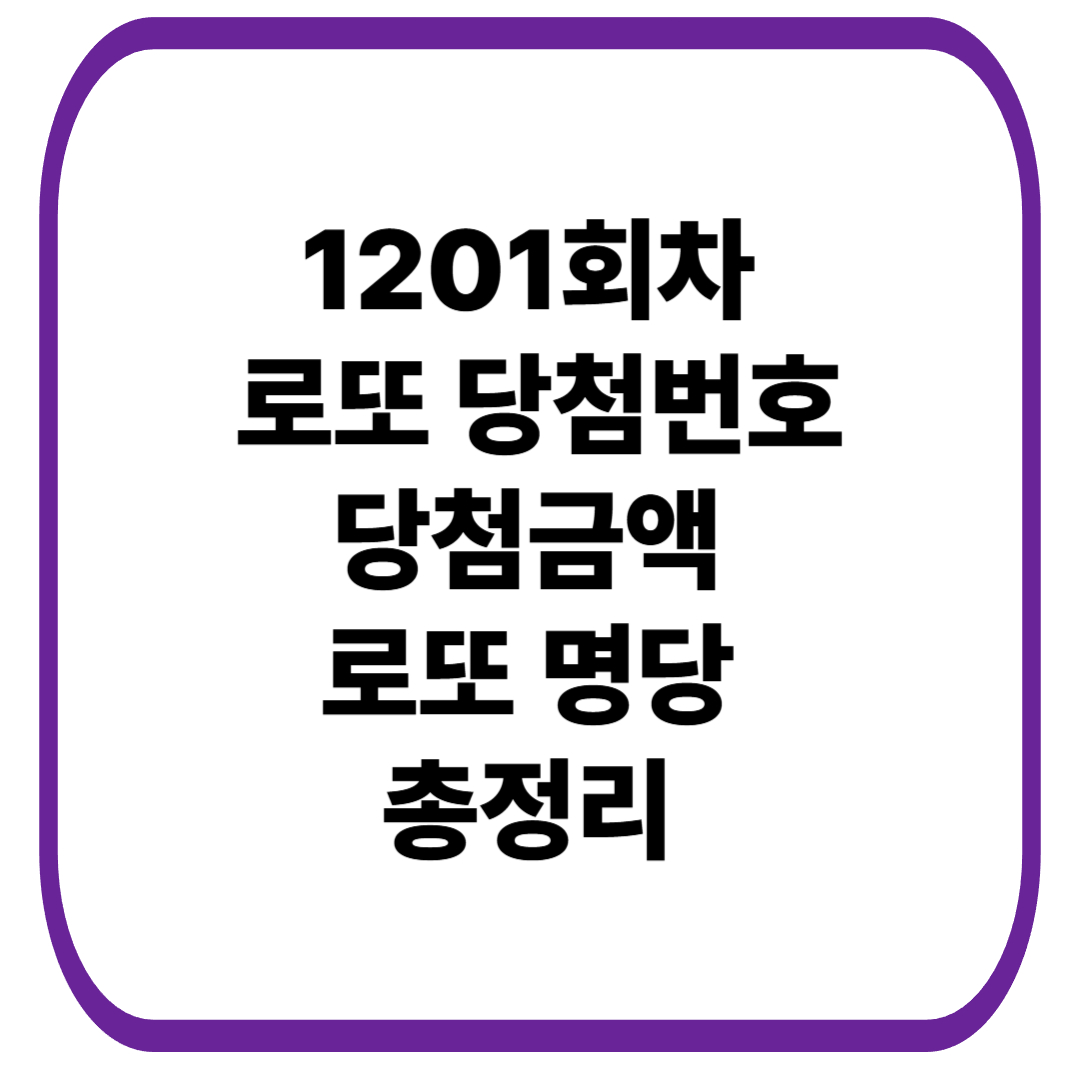 2025년 12월 6일 발표된 로또 6/45 1201회차 당첨번호와 당첨금액, 그리고 1등 로또 명당 판매점 정보를 정리해드립니다. 최근 로또에 당첨된 명당은 어디일까요? 다음 주를 준비하는 분들께 도움이 되는 정보가 되었으면 합니다.